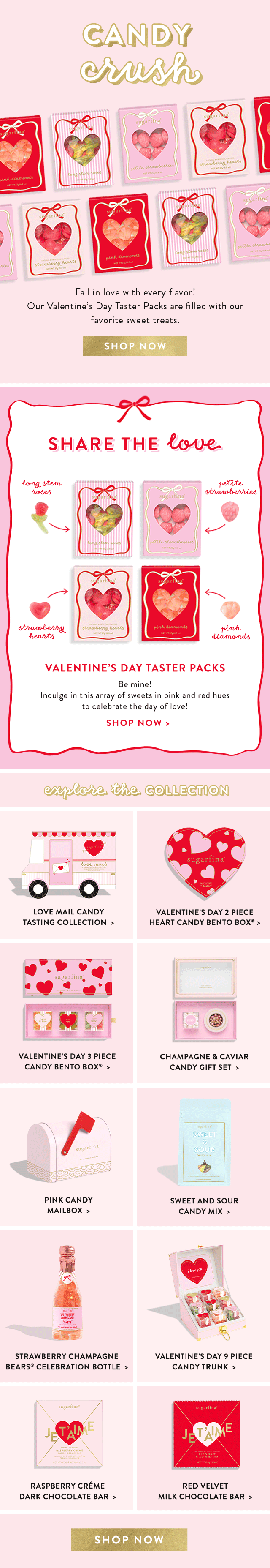 For Sugarfina’s Valentine’s Day 2025 campaign, I designed web assets, retail signage, and a variety of spotlight and sale emails. I also assisted the Head of Photography, retouching lifestyle photography that was utilized across all digital and print touchpoints.